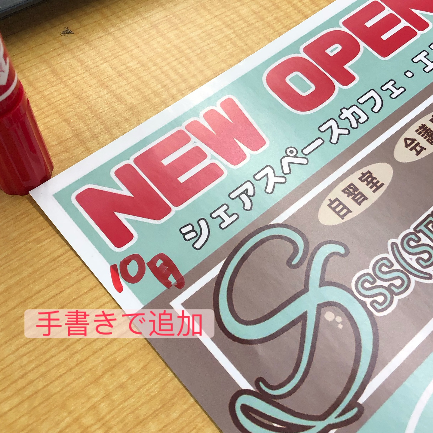 開店予定日を入れ忘れていたことに気づき手書きしています!!!!!!!