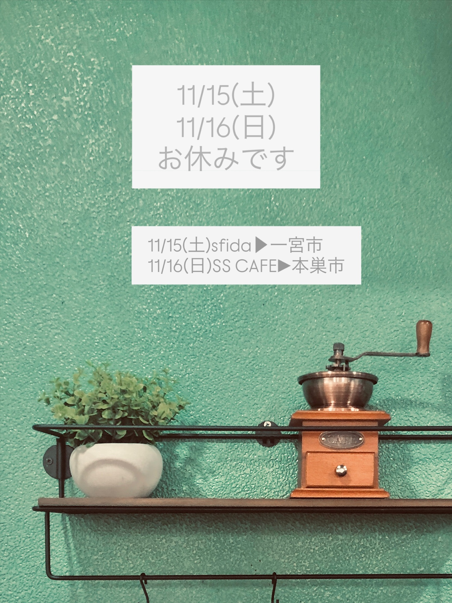 【11/15(土)11/16(日)お店はお休みです】