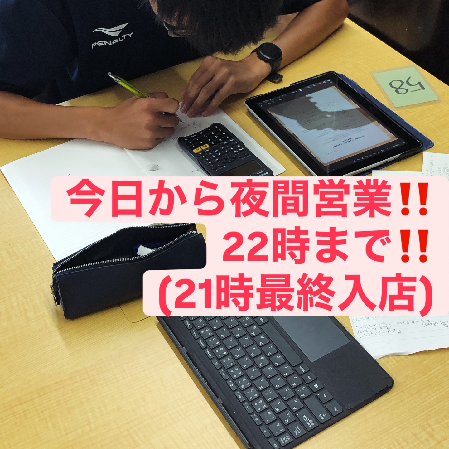 【試験応援月間スタート!】 【試験応援月間スタート!】家だと勉強が進まない!友達と一緒に進めたい!1人で集中できる環境でやりたい!そんな学生たちへの応援期間!本日から8月上旬まで営業時間を22時まで延長‼️⭕️飲食持ち込みOK⭕…